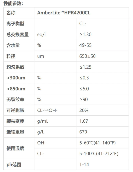 杜邦AmberLite? 强碱阴离子树脂的使用: