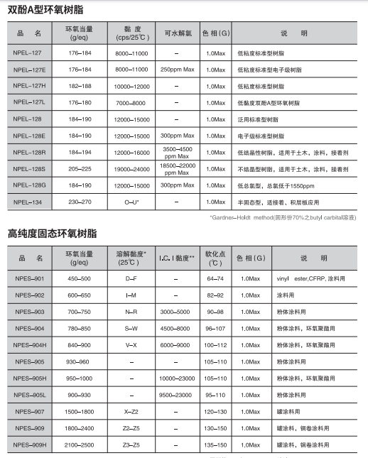 5.电绝缘性优良:环氧树脂的击穿电压可大于35kv/mm6.工艺性能良好、制品尺寸稳定、耐性良好和吸水率低。双酚A型环氧树脂的优点固然好,但也有其缺点:①.操作粘度大,这在施工方面显得有些不方便②.固化物性脆,伸长率小。③.剥离强度低。④.耐机械冲击和热冲击差。