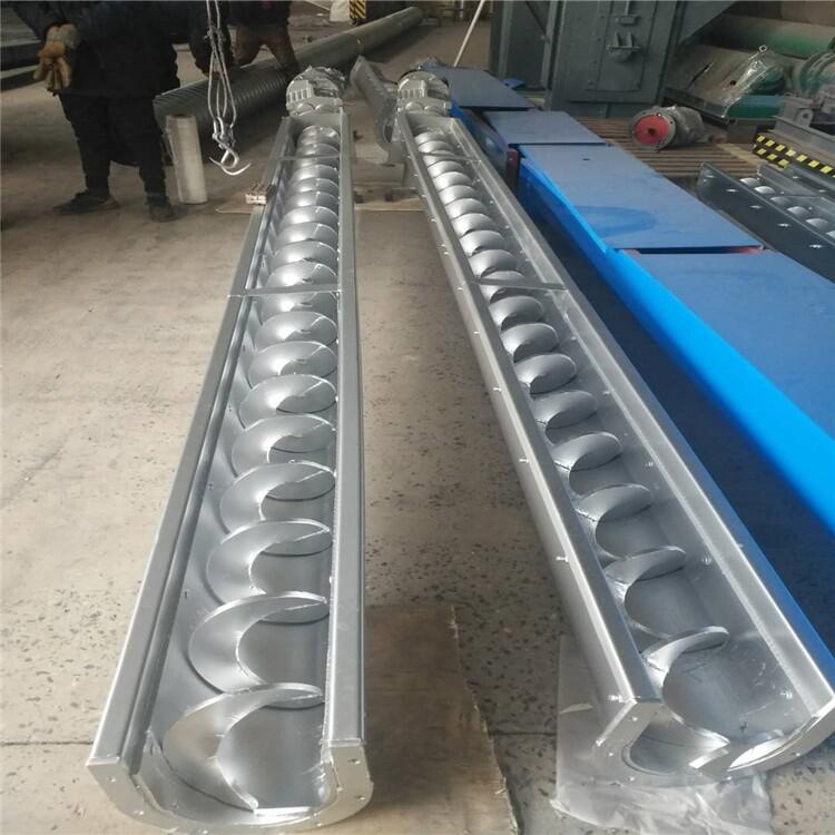 不锈钢螺旋输送机由有轴螺旋,u型槽,可换衬体,盖板,进,出料口和驱动装置组成.物料由进口输入,经螺旋推动后由出口输出.