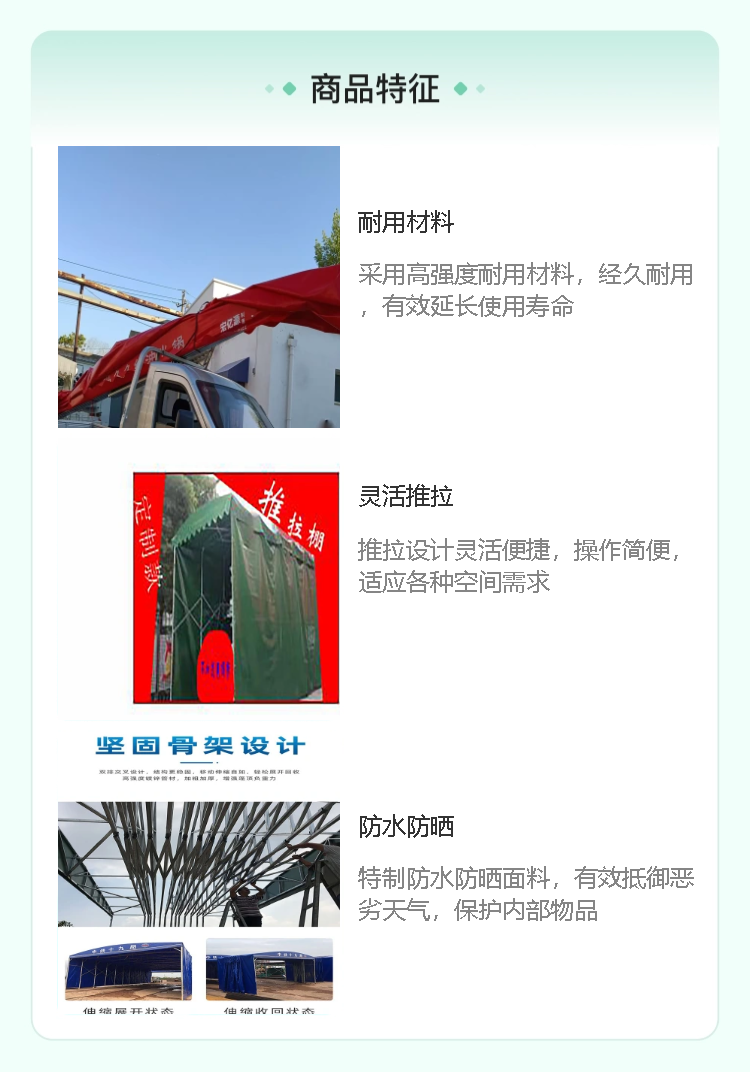 定制推拉篷防雨防晒长方形用加厚斜撑加大实心轮宏源定做