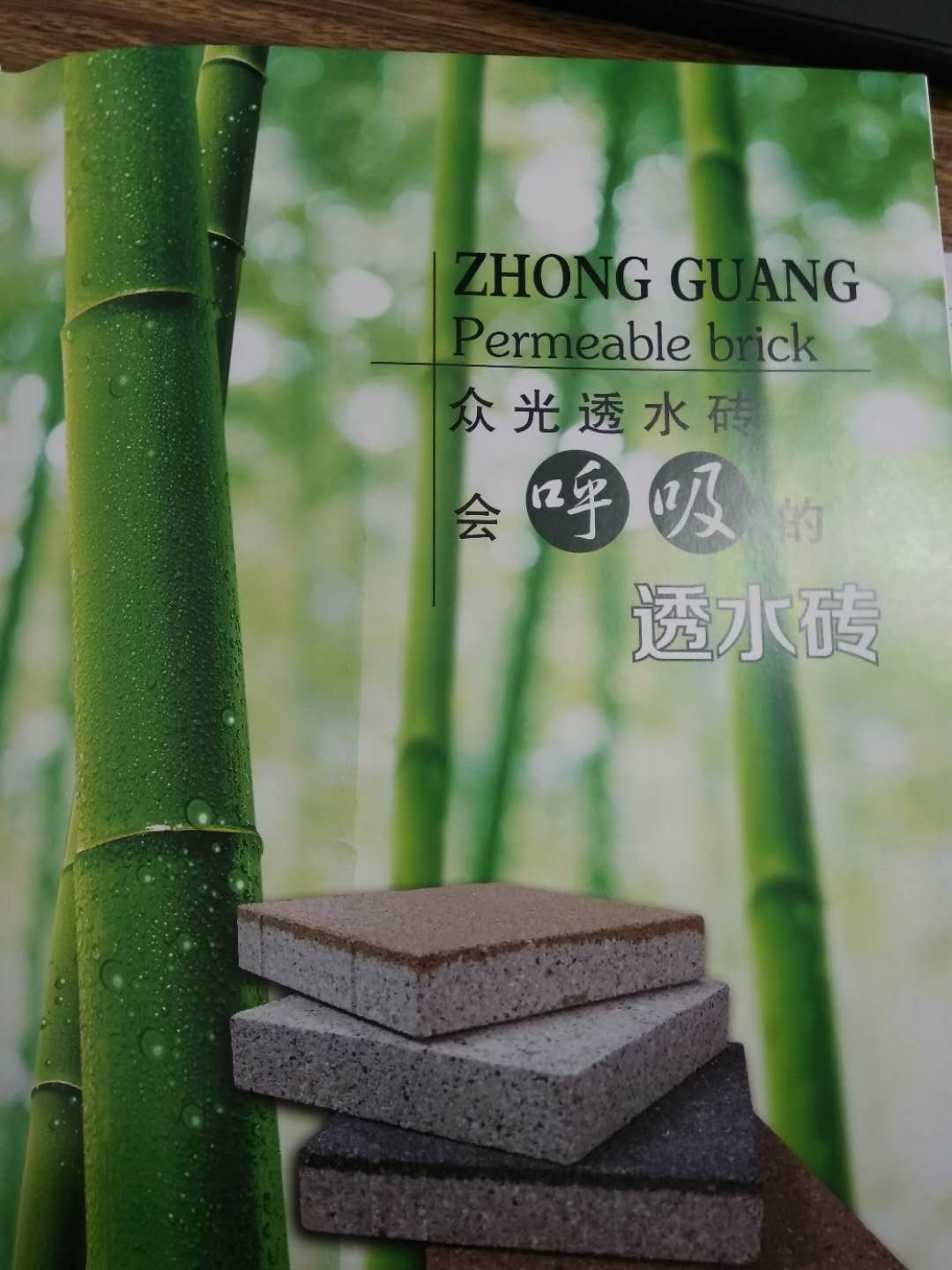 众光陶瓷透水砖是采用矿渣废料、废陶瓷为主要原料,经二次布料成型,高温烧制而成,是具有保持地面的透水性、保温性、抗压、防滑、抗寒、耐风化、降噪、吸音、强度高、可重复使用等特点的绿色环保产品。是解决城市“热岛效应”、地表硬化、防止城市内涝、营造高质量的自然生活环境、维持城市生态平衡的新型环保建材。