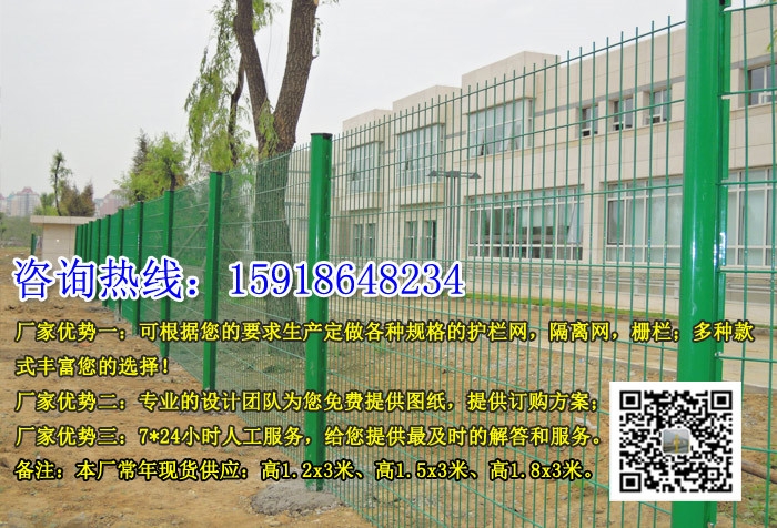 合适的折弯,造就了此种产品独有的美观效果,而且表面采用多种 颜色的浸塑处理,如黄色,绿色,红色,立柱与网片不同颜色的搭配更是令人赏心悦目,同时此种产品多采用带底盘立柱,安装只需打好膨胀螺栓,非常的快捷。