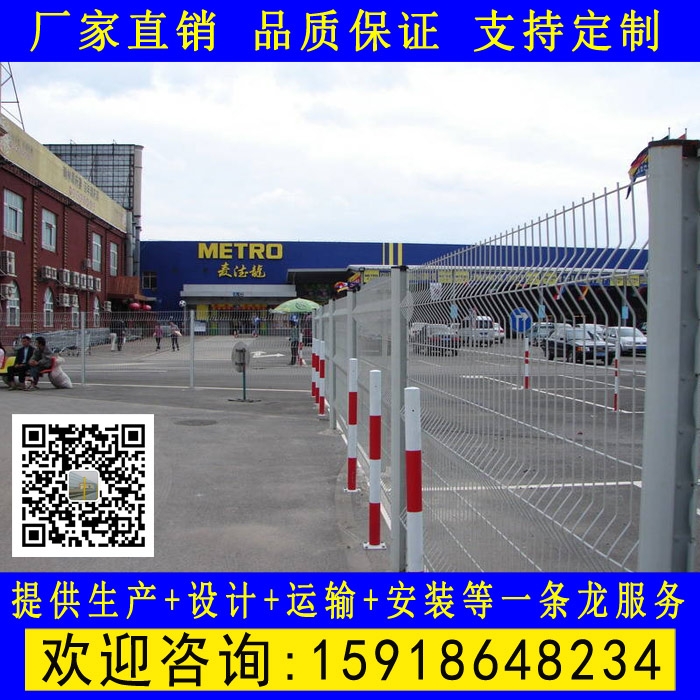三角折弯护栏网常见规格:浸塑丝径:4.0-6.0mm 网格尺寸:50mm x180mm 60mmx200mm 桃型立柱尺寸:50x70mm 70x100mm 厚度1-2mm 网片尺寸:2.5mx3.0m 加强筋:三道折弯或四道折弯:结构:用高强度冷拔丝与低碳钢丝焊接后经过液压成型,用链接附件与钢管支柱固定。