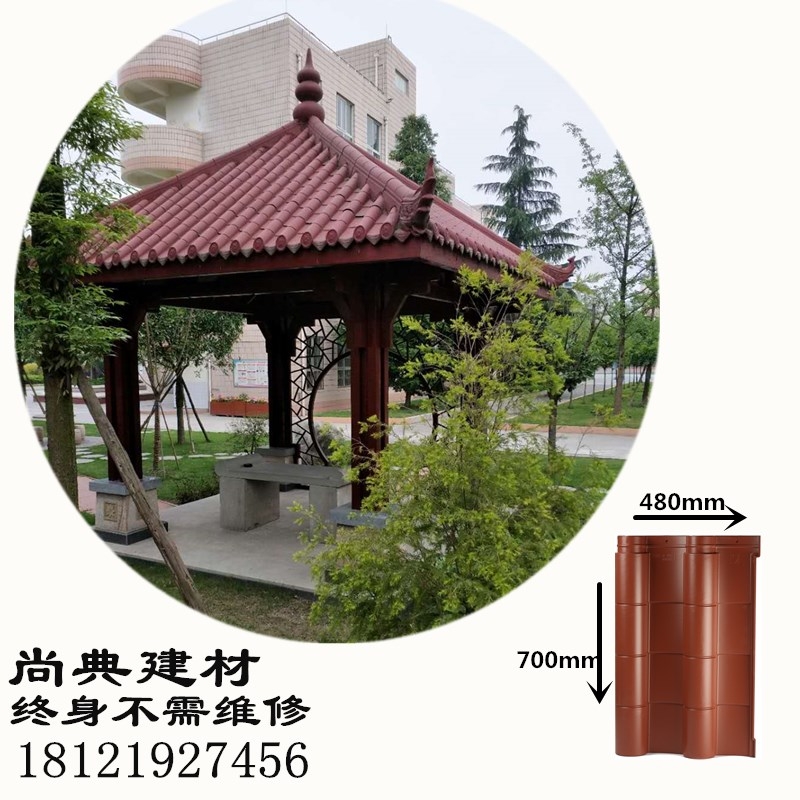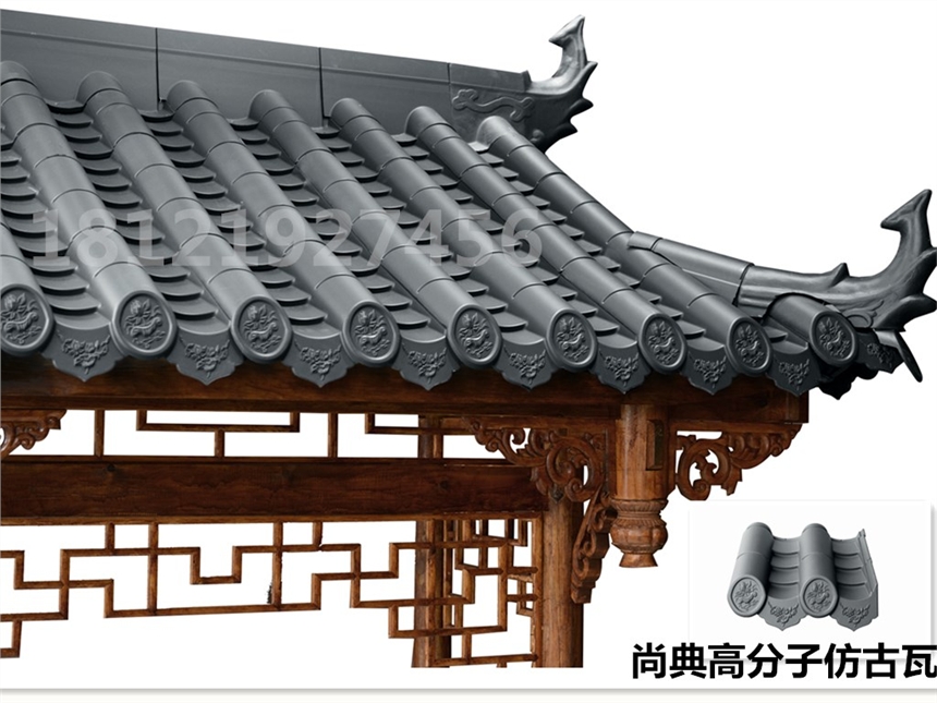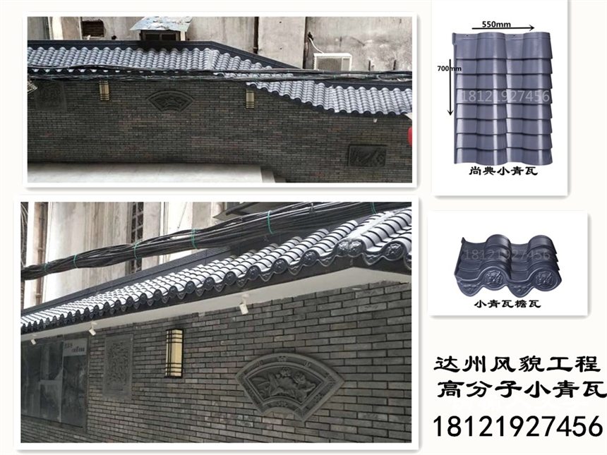 高分子小青瓦是一种低调的奢华,亲切随和,但又不失古建筑的厚重历史感,被大众认可还是因为质量出众,能做到不漏水,不需翻新,还能节省基材的砂,石,水泥,安装又方便快捷。