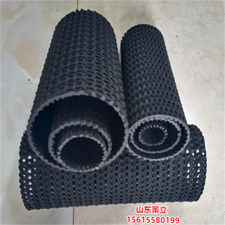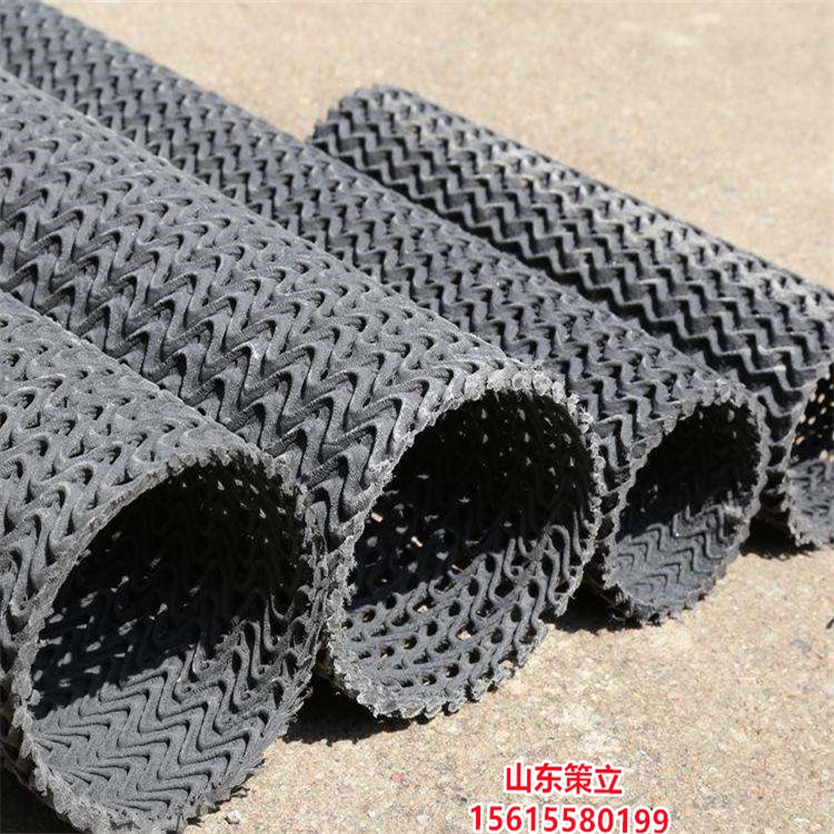 管道本身是塑料材质,热胀冷缩系数较高,所以不易放在太阳底下暴晒,温度过高容易影响其环刚度,建议储存在阴凉处,并用防水板或防水布盖住。采用直通或三通等配件连接,在安装时,必须将开孔部分朝上,而无孔部分放在下面。管材在预埋时必须先铺一层防渗土工布,然后用碎石回填,碎石直径不得大于5cm,在碎石上层可铺一层反滤土工布,以便过滤泥沙,防止泥沙进入管内造成堵塞,如果碎石层高度大于1.5倍管材直径时,可不用反滤土工布。