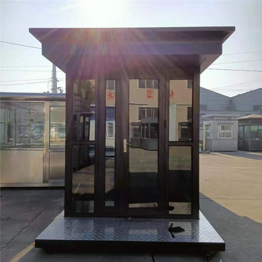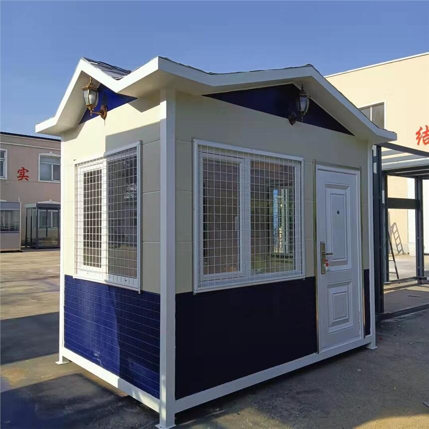钢结构岗亭的承重结构均为框架型钢结构,整体结构构件选材和焊接符合标准,**钢骨架结构,壁厚均在2mm以上,经防腐处理,吊装或铲装移动时,可保证产品牢固性。3、亭内地面为统一平面,内墙及屋顶同样采用钢结构荚芯板,防火、防腐蚀且便于清洁。外墙采用钢结构荚芯板,色彩稳定、雨水冲喷洗即可除尘,不剥落;抗紫外线辐射和水汽酸碱侵蚀,不宜老化;具有韧性、不易损坏,隔音隔热性能强,抗外力冲击不易碎裂损坏;自熄阻燃达到难燃级标准。通常来说,单人使用的岗亭以1.2×1.5×2.34m或1.5×1.5×2.35m居多,虽然也有*小一点的尺寸(例如:1.2×1.2×2.35m),但是尺寸过小的话,会造成工作人员在岗亭内觉得压抑,不适合长时间留守在岗亭内。双人使用的岗亭尺寸通常为1.5×2.0×2.35m,以此类推,2.0×2.0×2.4m的岗亭适合三人使用,而2.0×3.0×2.5m的岗亭则适合4-5人使用,*大尺寸的岗亭就要根据安装场地大小来定,通常除了要考虑亭体的尺寸大小外,还要考虑顶盖延伸出来的位置,以免场地过小导致岗亭无法摆放。