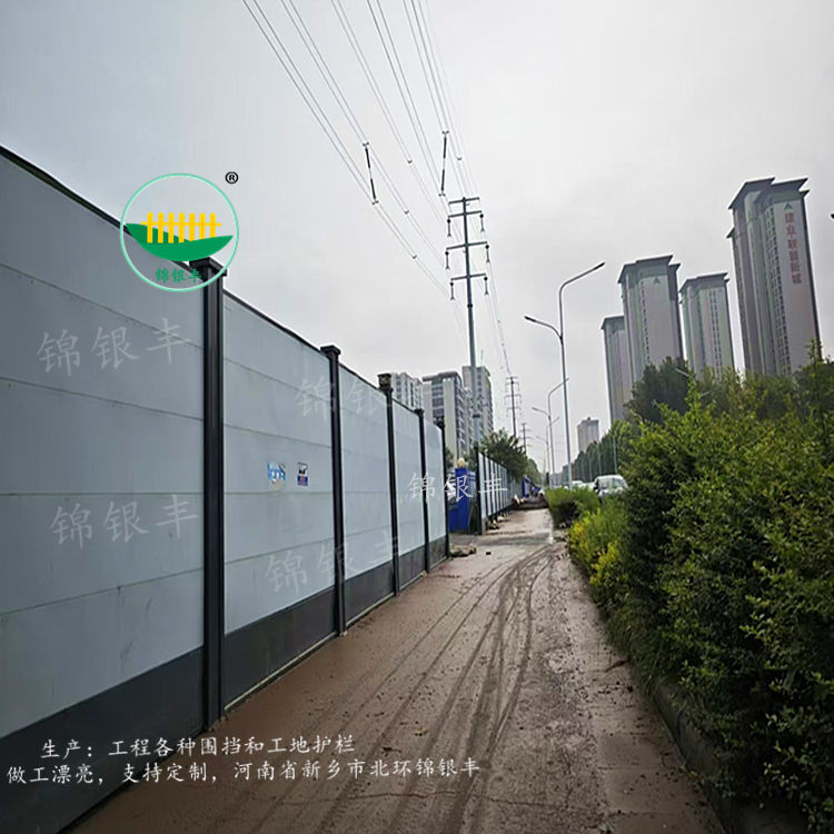 装配式工程围挡,工地施工围挡,彩钢围挡,适用于新建学校围墙,工厂围墙,工程围护,市政工程隔离等。新乡锦银丰,新乡市北环河南源头工厂直供,品质保障,价格优惠!新型灰白横版装配式围挡:工地建设的理想之选在现代城市建设的浪潮中,工地施工围挡不再仅仅是简单的隔离设施,而是朝着美观、实用、环保的方向不断发展。新乡锦银丰推出的新型灰白横版装配式围挡,正是这一发展趋势下的杰出代表。