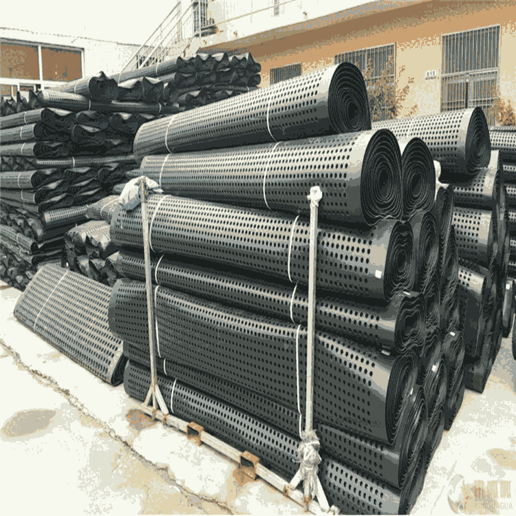 排水板选用高密度聚乙烯(HDPE)或聚丙烯(PP)经加热加压定型构成的一种既能营建具有必定立体空间支撑刚度的排水通道,又可蓄水的一种轻型板材。