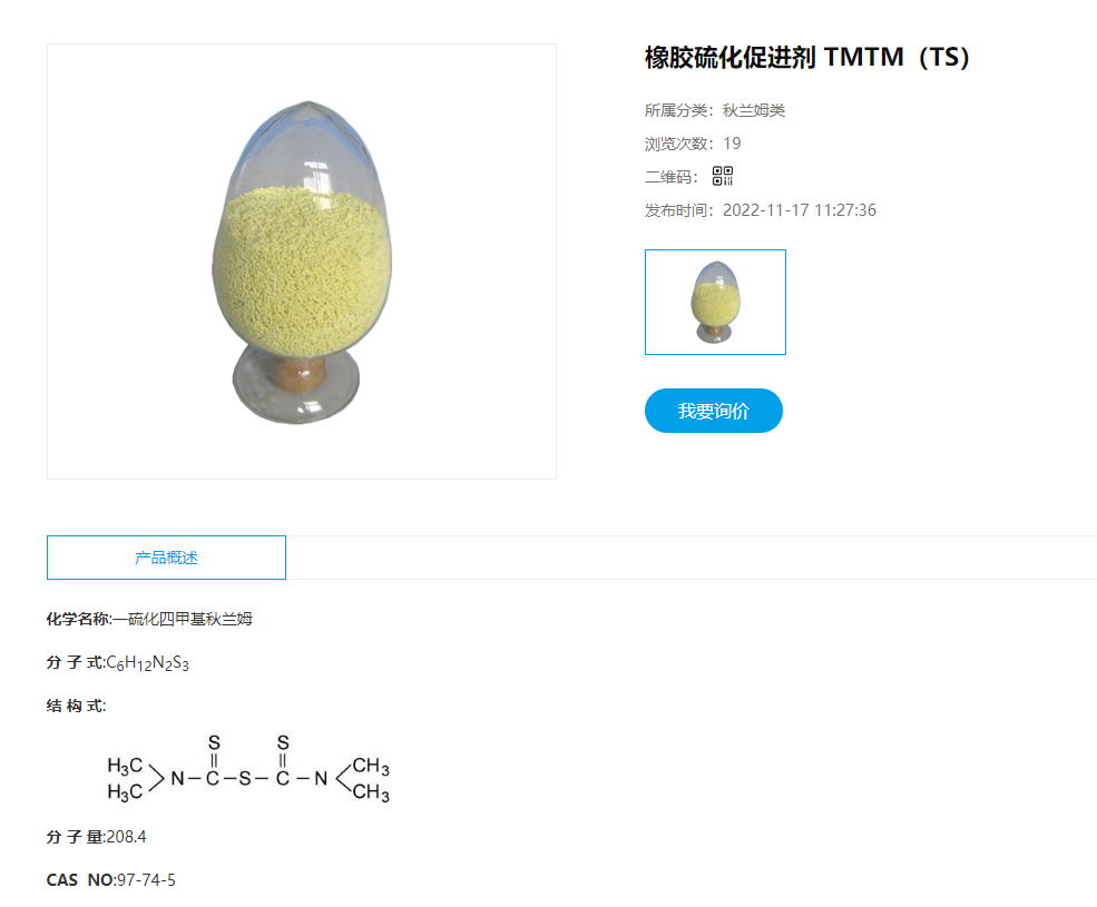 产品名称 | 一硫化四甲基秋兰姆 | ||