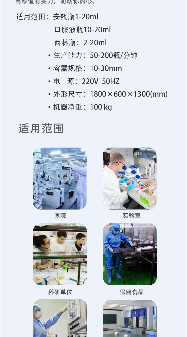 适用瓶子 | 10ml 安瓿瓶、口服液瓶(必须符合国际) | ||