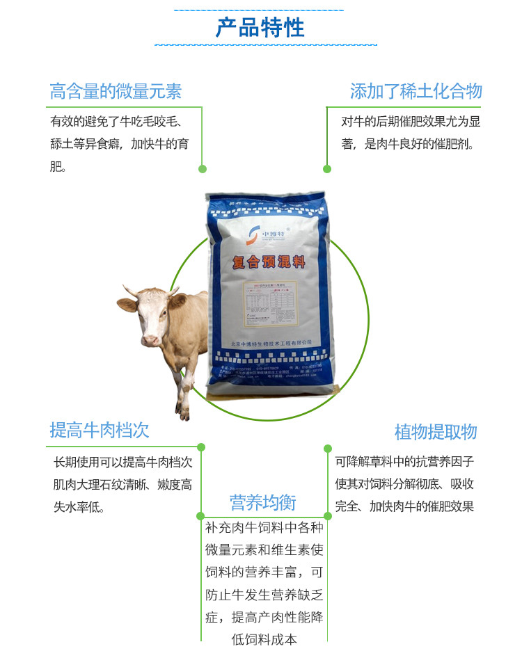 肉牛预混料(育肥牛专用预混料)特点:肉牛预混料催肥