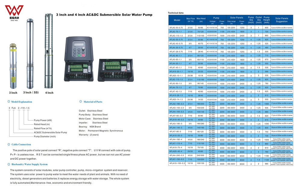 太阳能光伏水泵逆变器/控制器:转换太阳能电池板产生的电来驱动水泵工作;控制和调整水泵系统,实现功率最大化