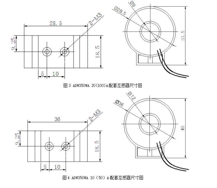 外置互感器/霍尔传感器 | 外置开口式互感器/外置霍尔传感器(选配W) |