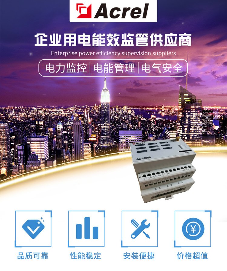 ADW350无线计量仪表主要用于计量低压网络的三相有功电能,具有体积小、精度高、功能丰富等优点,并且可选通讯方式多,可支持RS485通讯和Lora、2G、NB、4G等无线通讯方式,增加了外置互感器的电流采样模式,从而方便用户在不同场合进行安装使用。可灵活安装于配电箱内,实现对不同区域和不同负荷的分项电能计量、运维监管或电力监控等需求。?