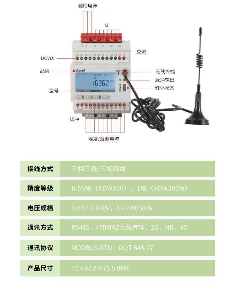 安科瑞无线计量电表ADW300/CK三相功率带通讯 4DI/2DO 品牌 | 安科瑞 | ||