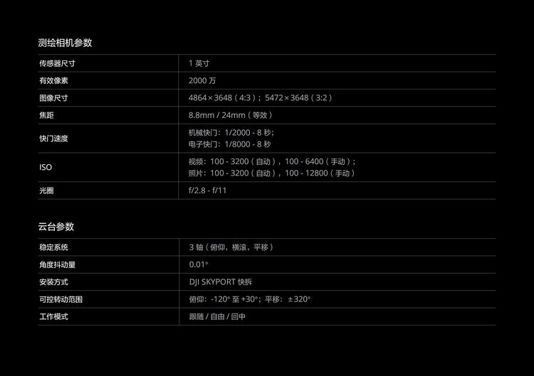 工作温度 | -20℃至50℃(测绘相机工作温度为0℃至50℃) | ||