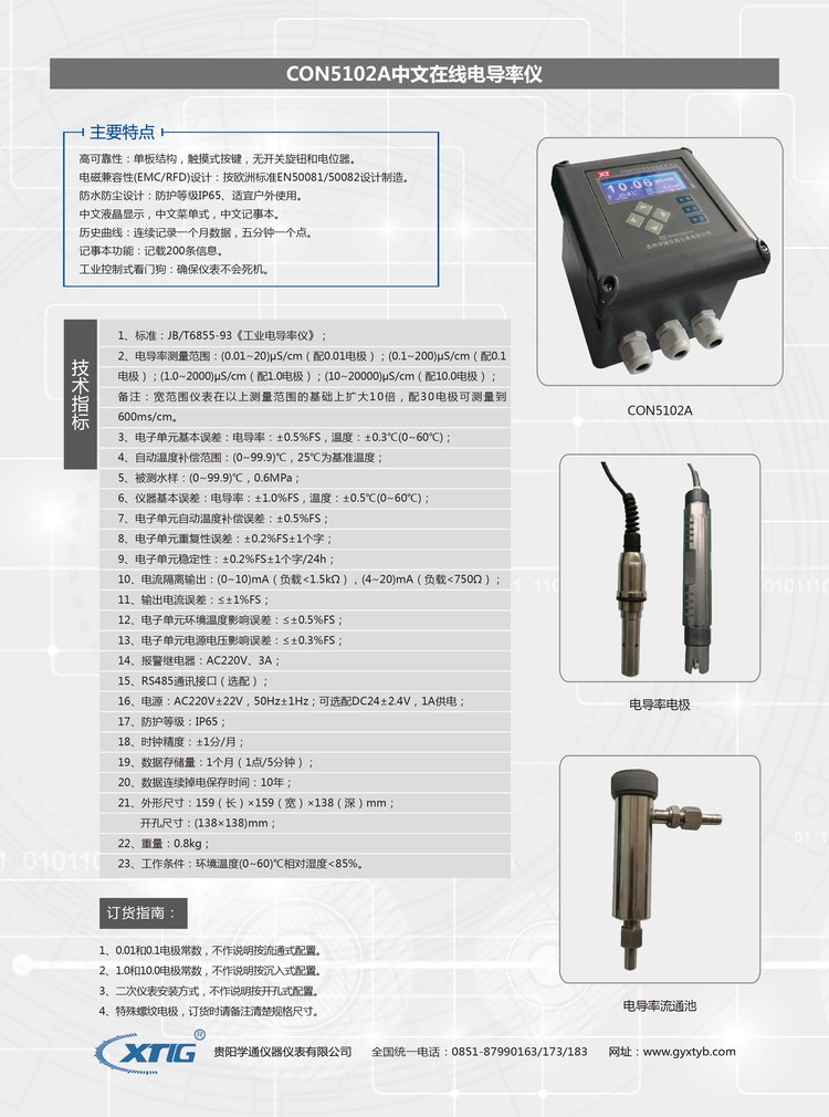 测量范围 | 电极常数×(1~3000)μS/cm, 0~99.9℃N | ||
