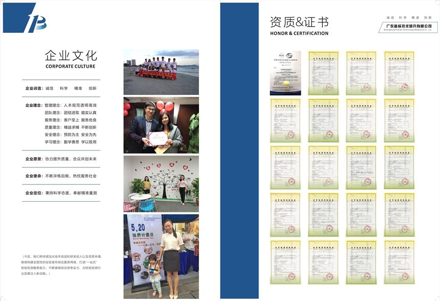 广东普标技术研究有限公司成立于2014年11月,是一家集计量校准服务、食品安全检测、化学实验室标准物质研发与销售、仪器与化学试剂销售为一体的综合性第三方检测机构。公司秉承精准、高效、诚信的理念,专注于为客户提供“一站式”服务,可提供上门现场计量、上门取送计量、代送计量等多种个性化定制服务,服务网络遍布全国。
