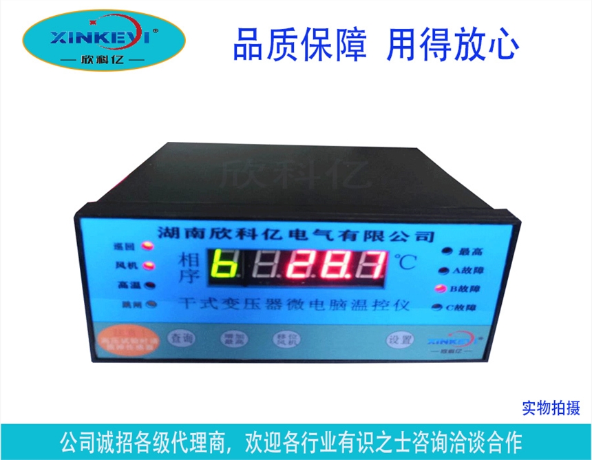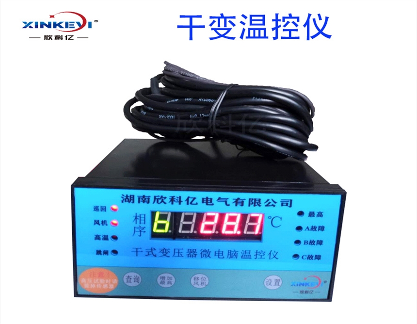 ?? BWDK-XKY3K130干式变压器微电脑温控器(简称干变温控)是我公司为风冷干式电力变压器可靠运行而设计的新一代多功能型微电脑温控仪。利用预埋在干式电力变压器三相(或铁芯)绕组线包中的三只(四只)NTC铂热电阻来检测干式电力变压器线包的温升,并根据温升自动控制冷却风机的启停、超温报警直至超高温跳闸以保证干式电力变压器的安全运行。由于采用目前先进的RISC单片计算机并结合先进的I2C存储与调整技术,根据JB/T7631标准设计而成,使得温控器具有结构简单,运行可靠,抗干扰能力极强的特点。同时温控器还具有“黑匣子”功能,可记录停电时三或四个绕组包的温度及本机的工作状态。在抗干扰方面,本仪器在设计上优化了抗干扰措施,同时可运用软件实时监控温控器的工作状态。在使用方面,本仪器还具有操作简单、安装方便、维护容易的特点。?