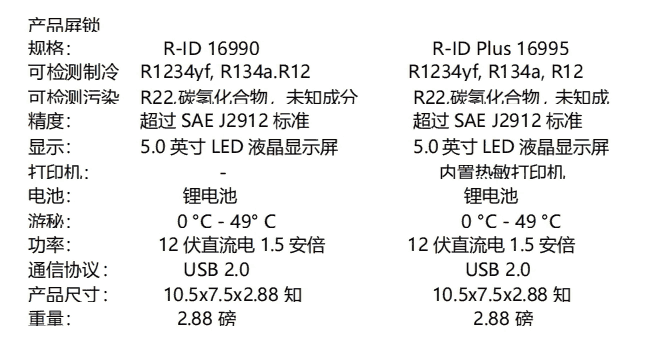 R-ID制冷剂鉴别仪16990和16995是新型制冷剂鉴别仪,