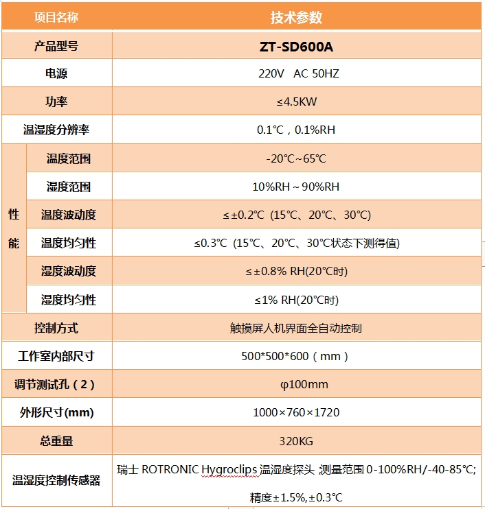 山东智拓仪器仪表有限公司成功研制低温低湿系列温湿度检定箱ZT-SD600A,(-20~50℃,10%RH~90%RH) 箱体内胆采用高级不锈钢(304),增加了外观质感和洁净度。采用进口压缩机与进口传感器探头,性能更稳定。补水箱置于控制箱体右下部,并有缺水自动保护,更便利操作者补充水源。大型观测视窗附照明灯保持箱内明亮,且利用发热体内嵌式钢化玻璃,随时清晰的观测箱内状况。加湿系统管路与控制线路板分开,可避免因加湿管路漏水发生故障,提高安全性。