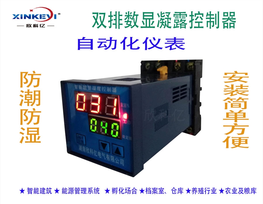 主要用于中高压开关柜、端子箱、环网柜、箱变等设备内部湿度的调节控制。可有效防止因设备受潮或结露引起的爬电、闪络事故的发生。该系列产品抗干扰能力强,可靠性高。智能湿度控制器带有一路凝露传感器,随时监测被测环境内部的湿度变化,并可通过设定方式对小环境内湿度进行自动控制。