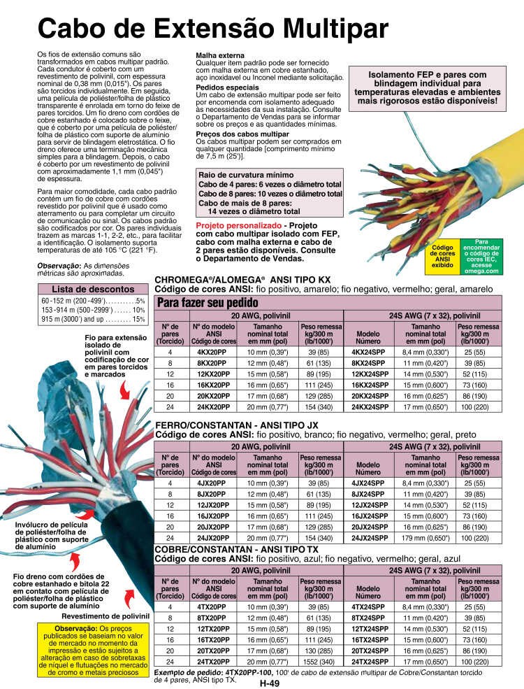 特别订单 可以按照订单生产多对延长电缆,使其绝缘层满足您的安装要求。有关价格和蕞低数量要求,请咨询销售部门。