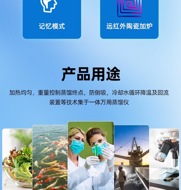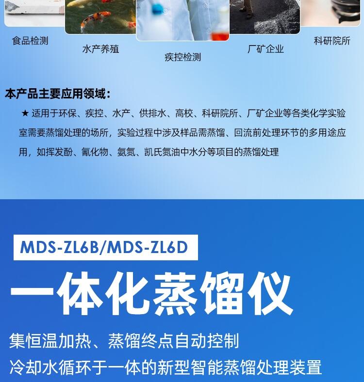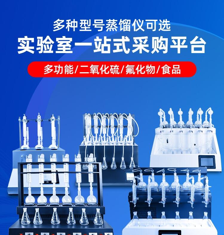 迈德施MDS-ZL6B/D氨氮蒸馏仪装置,根据实验室蒸馏预处理操作规程,集恒温加热、蒸馏终点自动控制、冷却水循环于一体的新型智能蒸馏处理装置。该仪器实验了精密控温、自动防倒吸、加热均匀、智能终点控制等功能。使用方便,节能环保。广泛适用于环保、疾控、水产、供排水、高校、科研院所、厂矿企业等各类化学实验室需要蒸馏处理的场所,如挥发酚、氨氮、凯氏氮油中水分等项目的蒸馏处理。