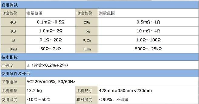 1. 测试电源可输出电流40A,测试范围0~25kΩ,满足绝大多数变压器的测试需求。