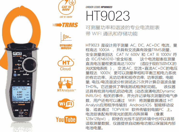 意大利HT9023电能质量钳形表ht9023