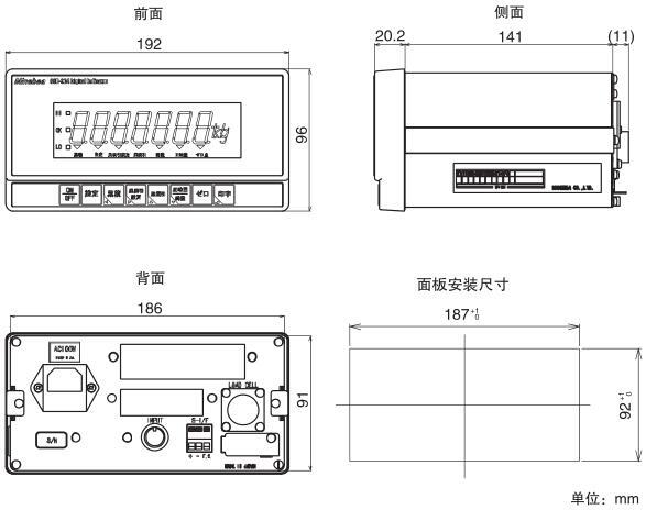 可在g、kg、t、lb之间进行切换(绿色荧光显示管) |