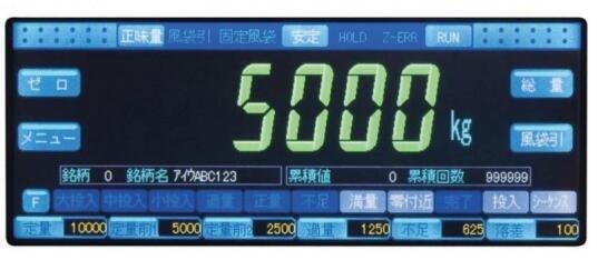 GROSS / NET, TARE, PRE.TARE, STABLE, HOLD, Z-ERR, RUN, CZ, F.FLOW/S1, M.FLOW/S2, D.FLOW/S3, OVER/S4, OK, UNDER, FULL, Z-BAND, FINISH, FLOW / DISCH., S-COMP / SEQ. / 4-COMP / MEAS. / OUT / MIX |