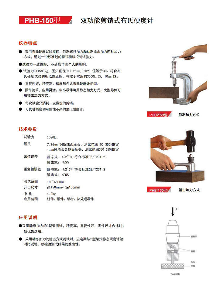 PHB-150型双功能剪销式布氏硬度计 锤击方式测试