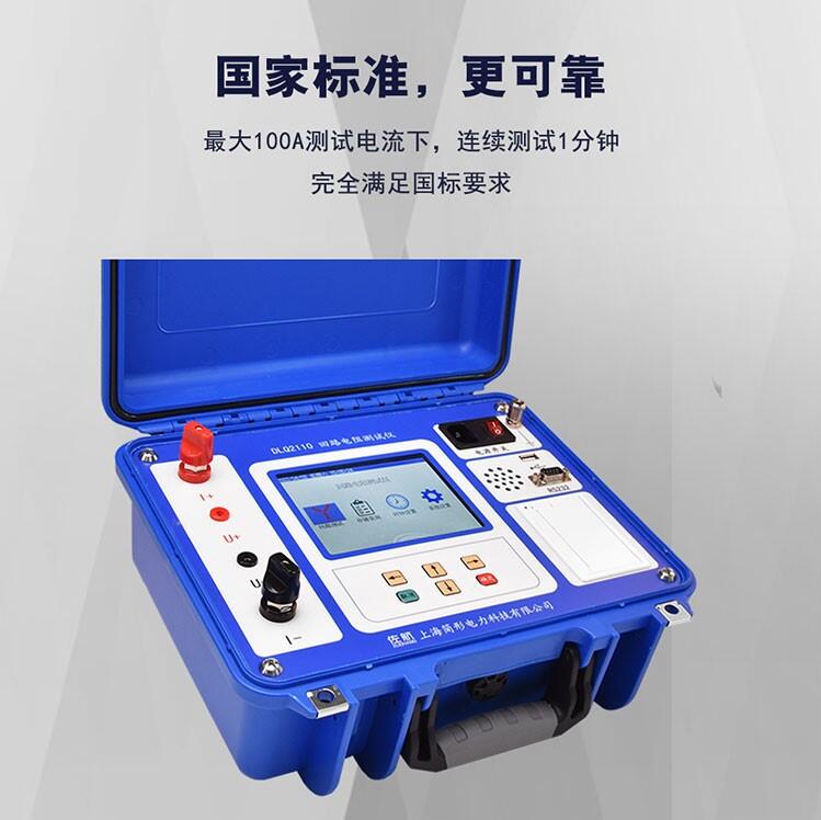 佐航 DLQ2110 回路电阻测试仪采用 100A 恒流输出,可输出电压达10V(为常规仪器的 3~5 倍),可采用截面较细的测试线,减轻了现场测试人员的劳动强度。本产品主要应用于开关触点的接触电阻和其它微欧电阻的测量,测试速度快、准确度高。