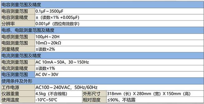 电容测量范围 | 0.1μF~3500μF | ||