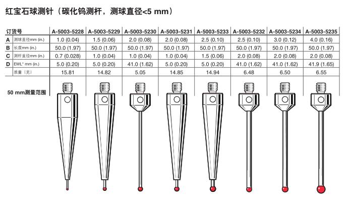 这是zui简单的一种测针,采用高球度的工业红宝石测球和备选的各种测杆材料。