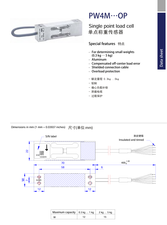 微型HBM_ PW4M 和HBM_ PW4M-OP 单点称重传感器额定量程为 5千克。其具有的测量精度和性价比。这些称重传感器可用于贸易秤应用,并且具有的精度(精度等级C3),特别适用于小包装的配料、灌装和控制任务,例如制药、化妆品和食品包装等。HBM_PW4M 单点称重传感器基于应变测量原理,小额定量程为 300 g 并带有 OIML R60 ren证证书。PW4M-OP 传感器带有过载保护功能,过载能力高达额定量程的 10 倍。