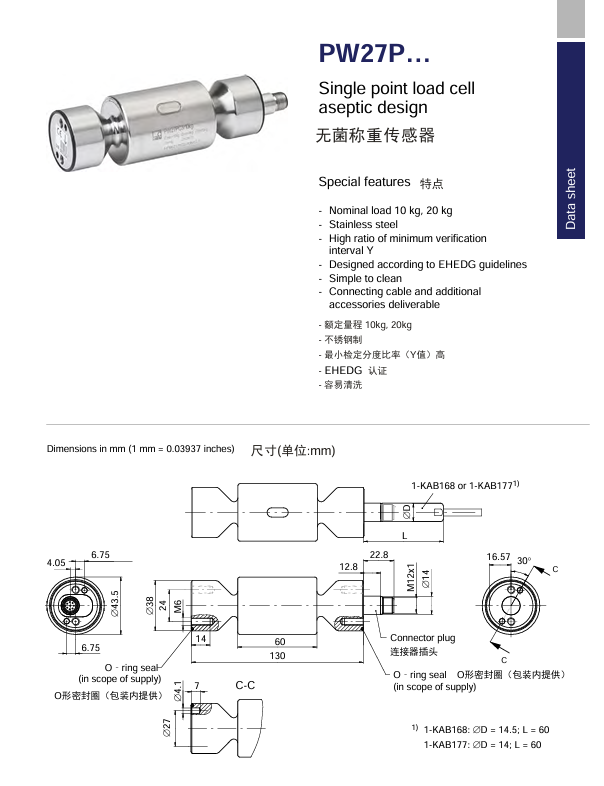 德国HBM无菌称重传感器PW27PC3-10kg