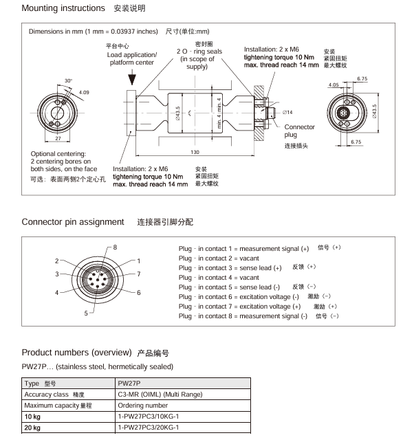 HBM PW2DC3 12kg称重传感器相关产品: