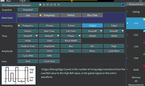 - 具有搜索和标记功能的波形光标读数可轻松识别所采集波形中发生的事件。