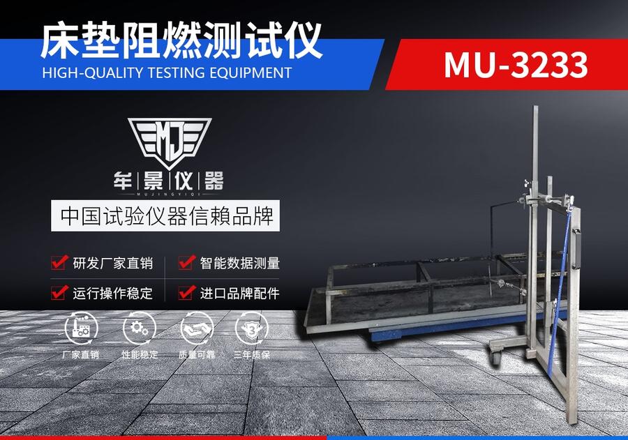 床垫阻燃测试仪符合16 CFR 1633 United States Government Standard for Flammability of Mattresses 16 CFR Part 1633 “Standard for the flammability (open flame) of mattresses sets”.