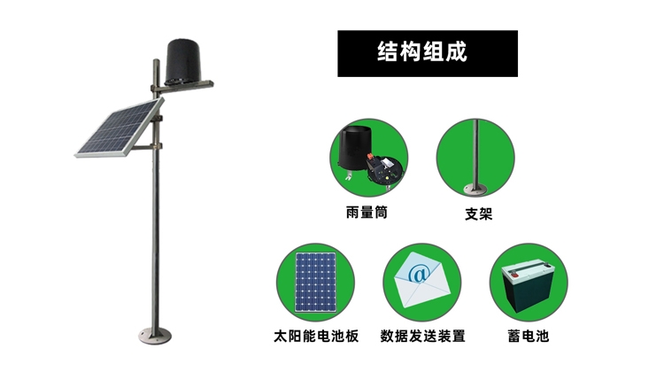 E-mail雨量监测站是一款以物联网为基础的现代型雨量站,由雨量传感器(雨量筒)、数据发送装置、蓄电池、太阳能电池板、支架等组成,可以登录物联网平台发送短信,远程对雨量站的数据上报间隔、邮件接收数量、邮件接收地址、是否清空数据等参数进行设置,并能够以电子邮件(E-mail)的形式发送雨量数据,雨量数据包括降雨状态、每次数据采集间隔的降雨量、本次降雨量、天降雨量、周降雨量、月降雨量、年降雨量等,发送至邮箱的数据可直接复制到EXCEL表格中,供用户作进一步的数据分析和处理。