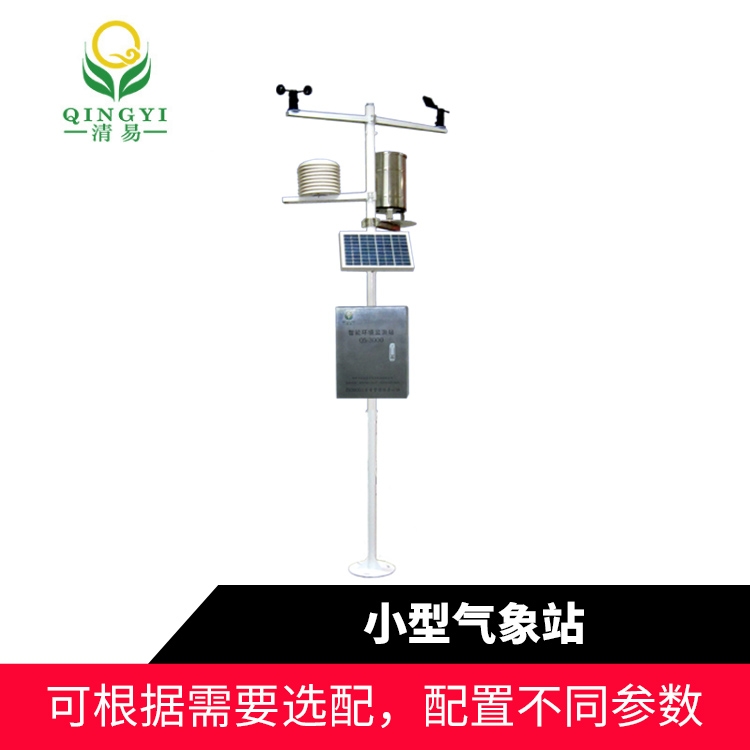 小型气象站由气象传感器、数据采集终端、电源系统、防护箱和支架等部分构成。风速、风向、雨量、蒸发量等传感器为气象传感器,具有的特点。数据采集终端具有气象数据采集、气象数据定时存储、参数设定、友好的软件人机界面和标准通信功能。