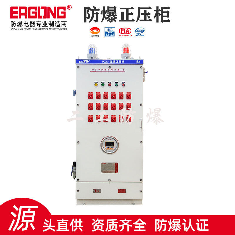 1.防爆正压柜在自动控制系统的控制下,正压腔内压力高于正压腔外的压力,形成微正压的安全小环境,从而阻止了可燃性危险气体进入正压腔内,对于内装的普通仪表和电器元件产生的电弧、火花进行完全的隔离,保障了现场的安全允许。
