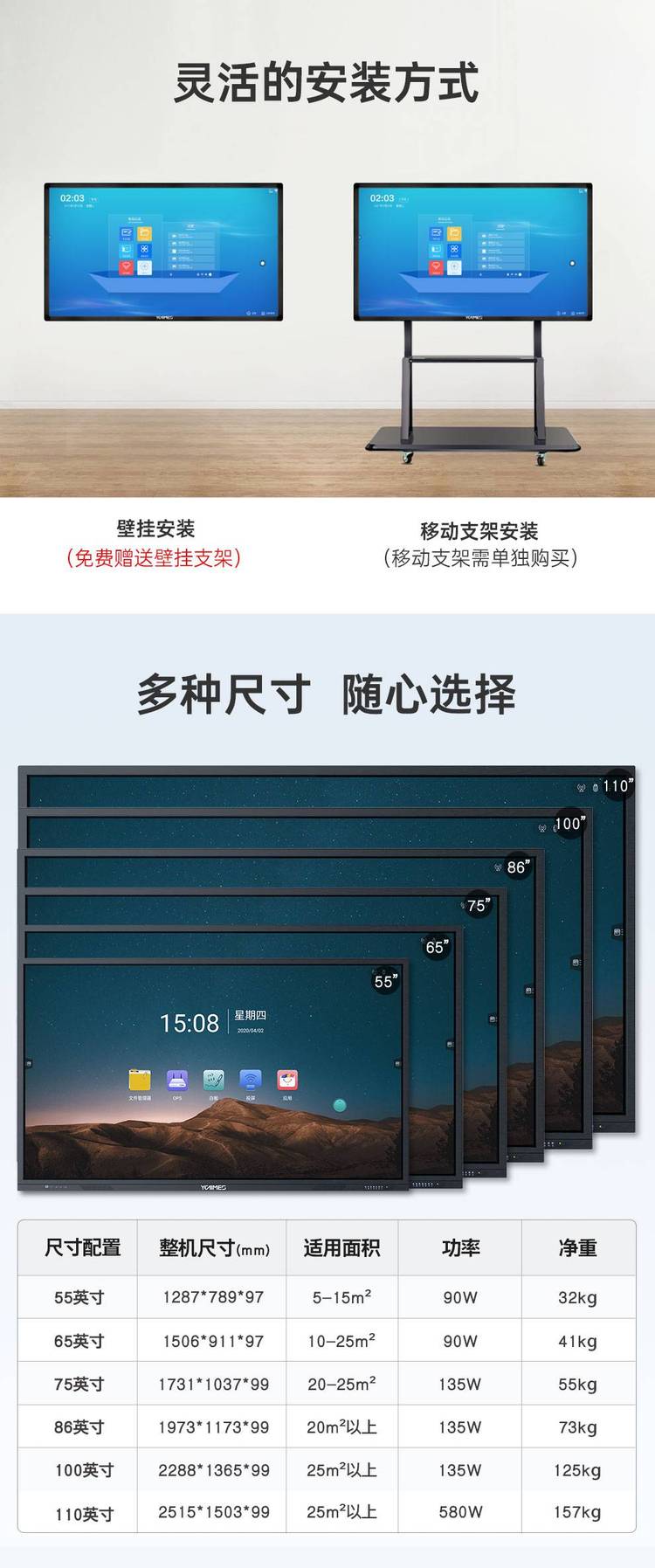 屏幕尺寸 | 86寸 | ||