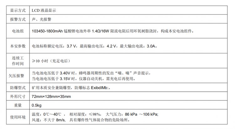 1.4?产品防爆型式及防爆标志?防爆型式:矿用本质安全兼隔爆型;防爆标志:ExibdI Mb。