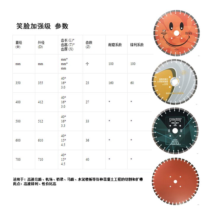 笑脸加强级优点 | 高速锋利 性价比高 | ||