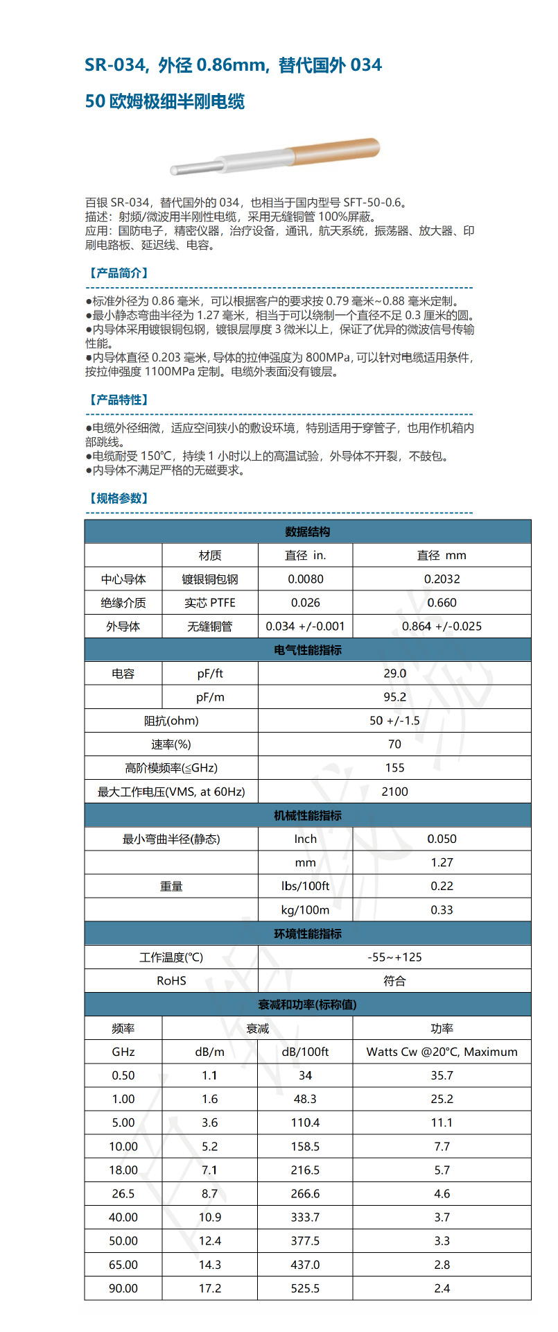 034半刚电缆-半钢电缆034-半钢034,外径0.86mm,