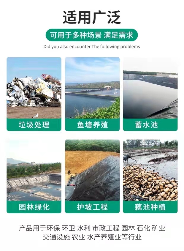 用途范围 | 沼气池、蓄水池、氧化塘、人工湖、大型水库、河道、危废渣场 | ||