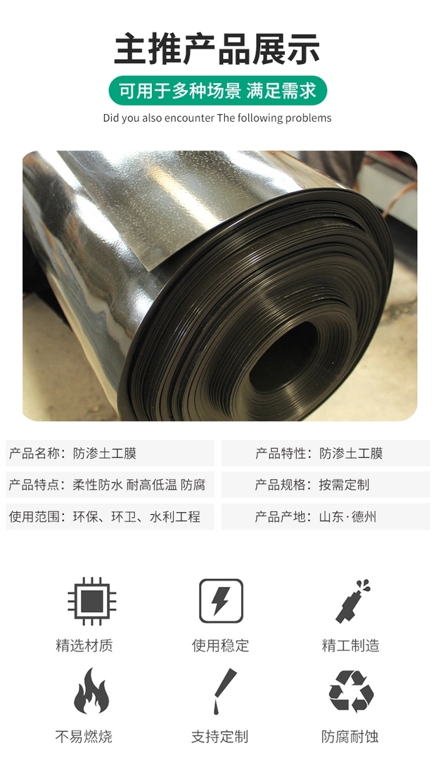 用途 | 垃圾填埋场、污水或废渣处理场防渗等 | ||
